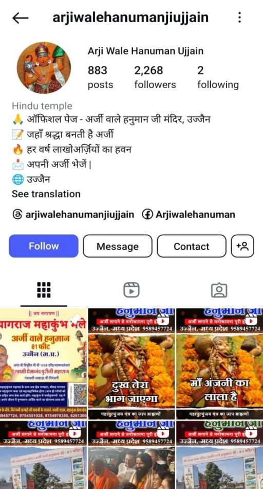Arji Wale Hanuman Ji Mandir, Ujjain — A holy place where devotees write their wishes on paper and offer them to Lord Hanuman in the form of a request. This temple is famous all over the country for its unique tradition and miracles. The entire management of this temple is being done by Narayan Seva Trust Ujjain, which works on the basic principles of faith, service and transparency. It is believed here that any devotee who prays three times with a true heart, his request definitely reaches Lord Hanuman – and a solution is also found.